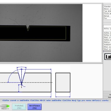 The testing laboratory is equipped with a notching device and ensures the preparation of the notch on the supplied material samples. Prior to the actual test, the shape and size of the test specimen is verified using the OptoLab device, which compares the test specimen with the dimensional requirements of the relevant standard. In the event of failure to meet the required dimension of the specimen according to the relevant standard, the test piece shall be adjusted until it meets the requirement of the relevant test standard. Our laboratory is also equipped with a LabTest CHK450J pendulum Charpy hammer with digital angle sensing. A replaceable cutting edge with a radius of 2 mm according to ISO standard CSN ISO 148-1 is available. We can arrange for the production of a test specimen from a sample supplied by you.